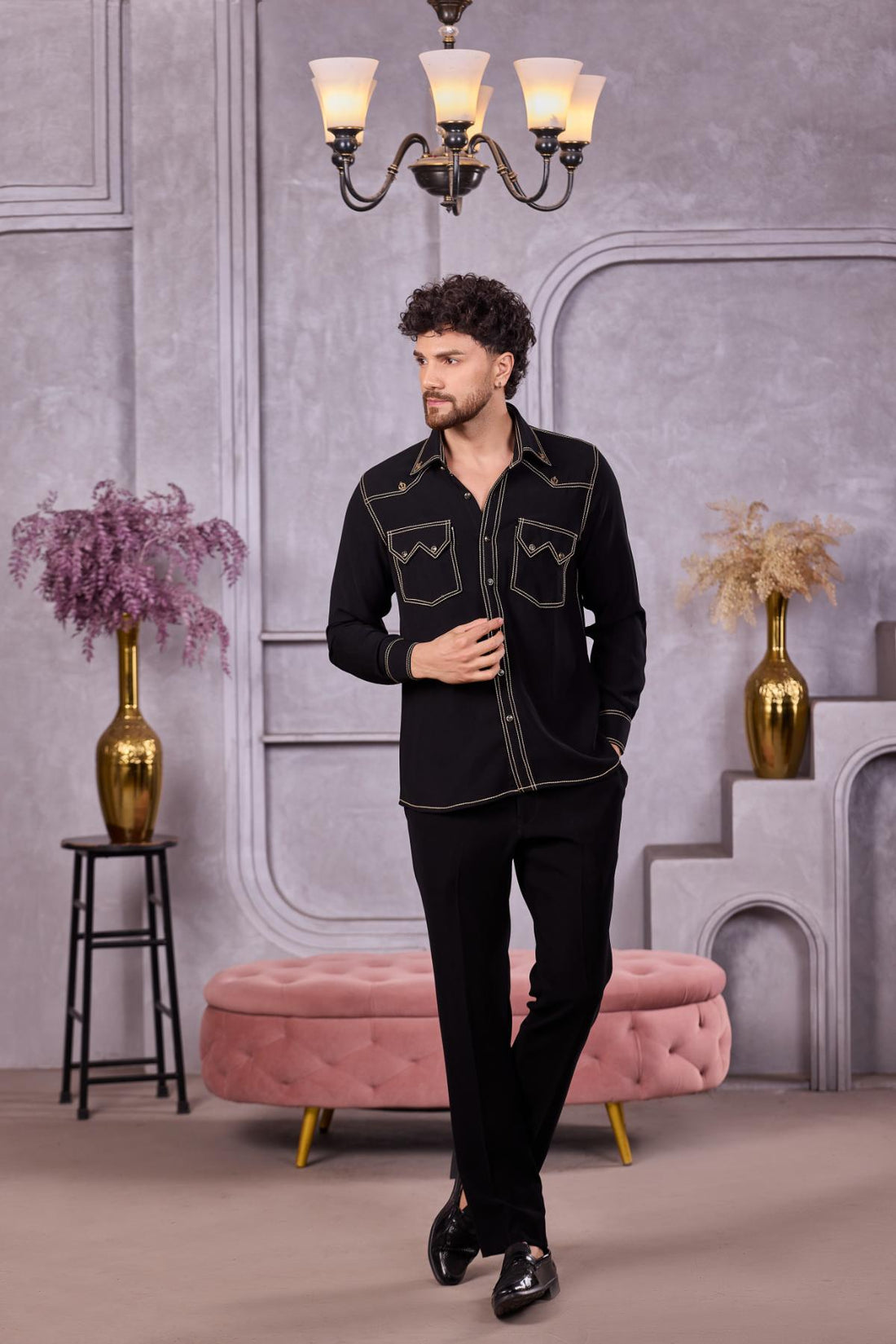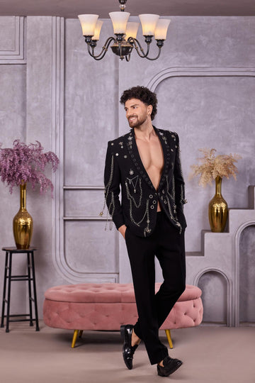Black Gold Sequin Embroidered Suit