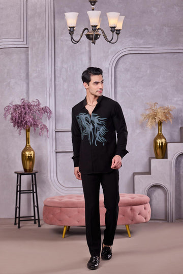 Black Silver Designer Floral Suit