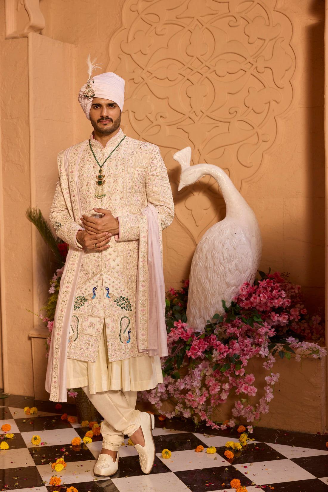 Ivory Pastel Embroidered Sherwani